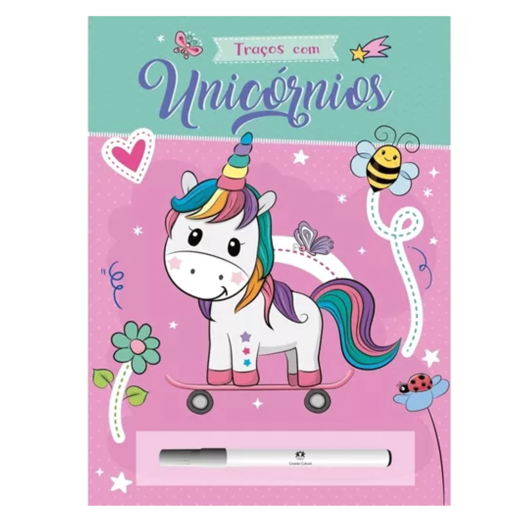 Transforme o aprendizado em magia! ✨ Adquira agora o Livro Escreva e Apague Traços Com Unicórnios e proporcione momentos de diversão e criatividade para seu filho! 🦄💖